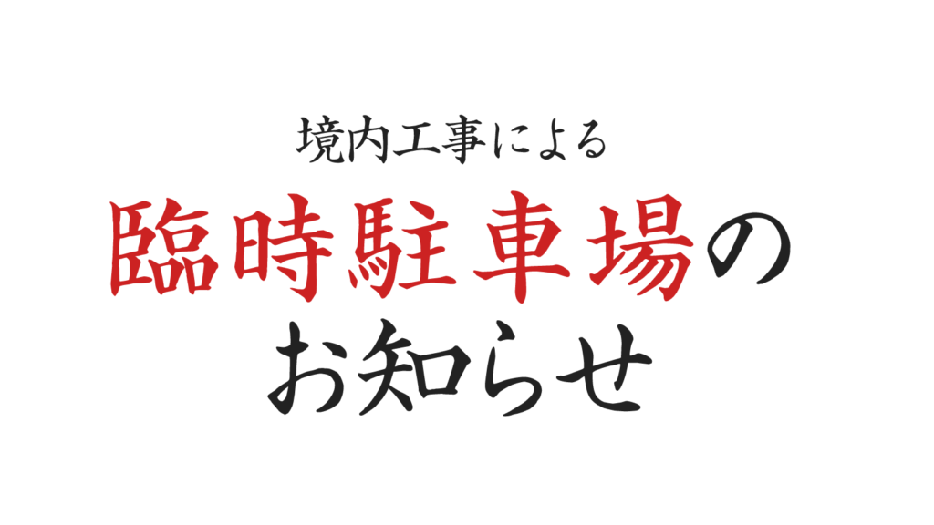 境内における給排水設備工事のため、工事期間中は境内の駐車スペースをご利用いただけません。お車でお越しの方は、臨時駐車場をご用意しておりますので、そちらをご利用く…