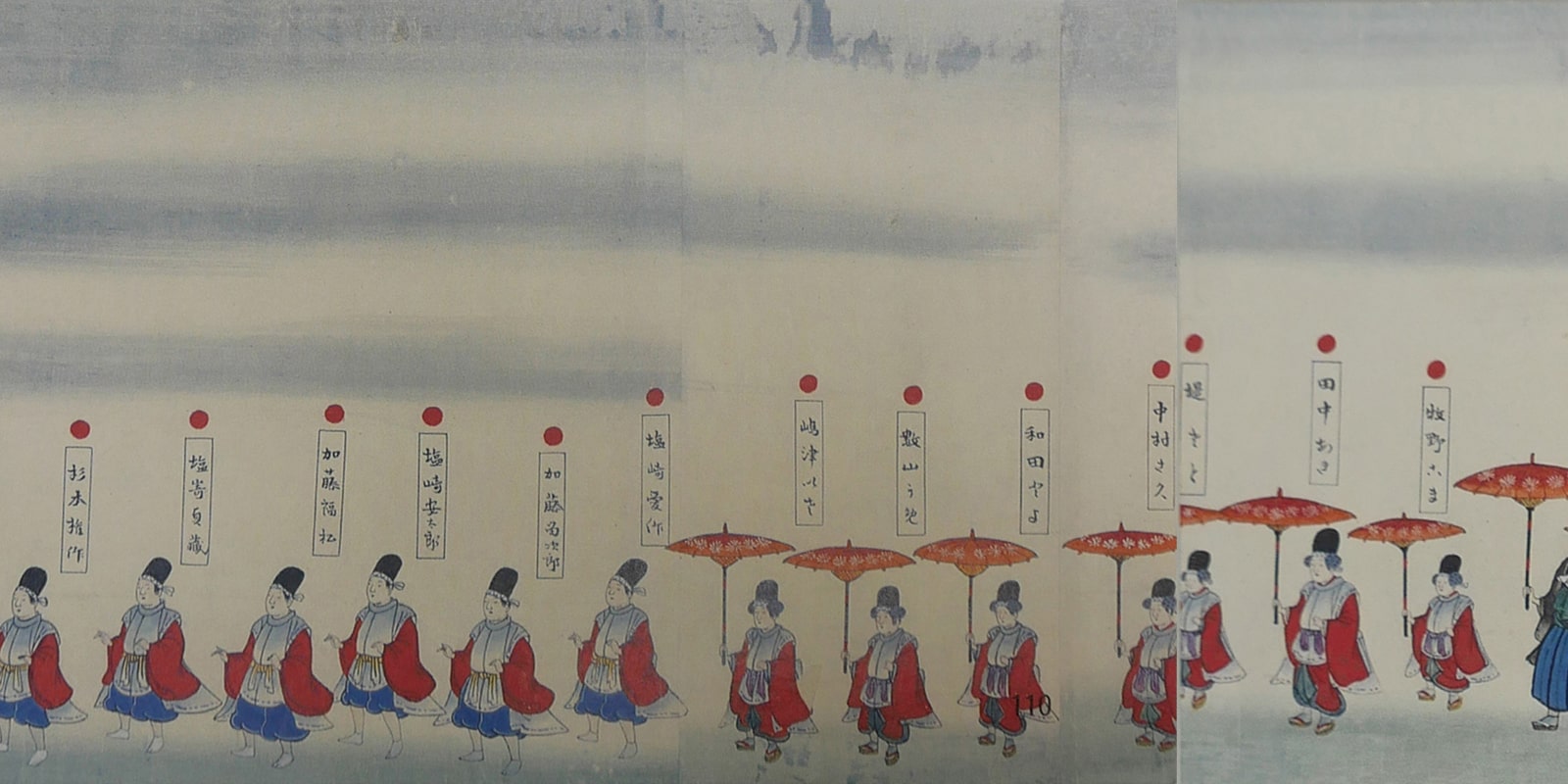 明治19年9月、神社に奉納しましたが、その後再び絵巻物を奉納した当番町がなかったことからも、いかに費用と労力を要したかが推測されます。
